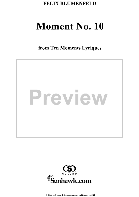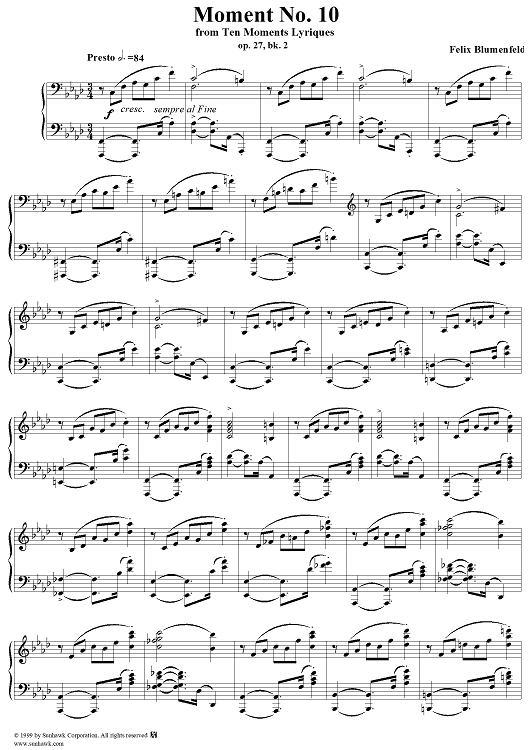 "Ten Moments Lyriques, op. 27, bk. 2, no. 10" Sheet Music by Felix Blumenfeld