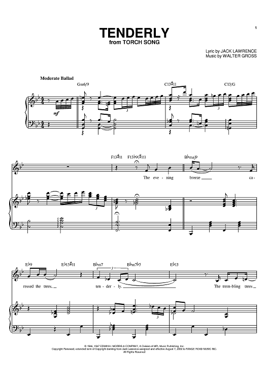 Digital Sheet Music for Tenderly by Jack Lawrence, Walter Gross, Willie Nelson scored for Piano/Vocal/Chords; id:380449
