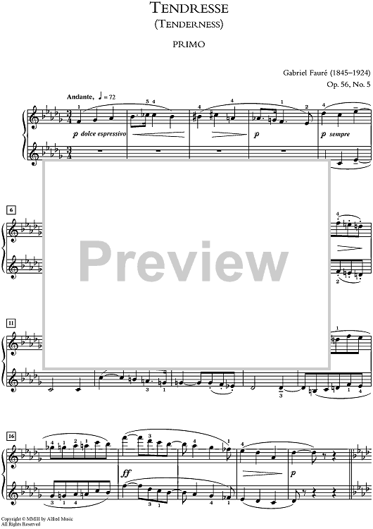 "Tendresse (Tenderness) - from Dolly Suite, Opus 56" Sheet Music by Gabriel Fauré