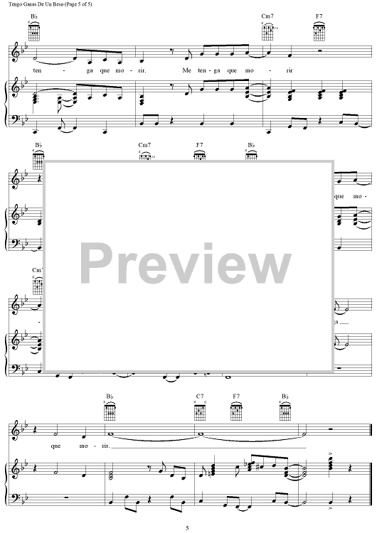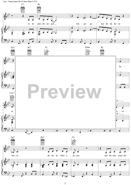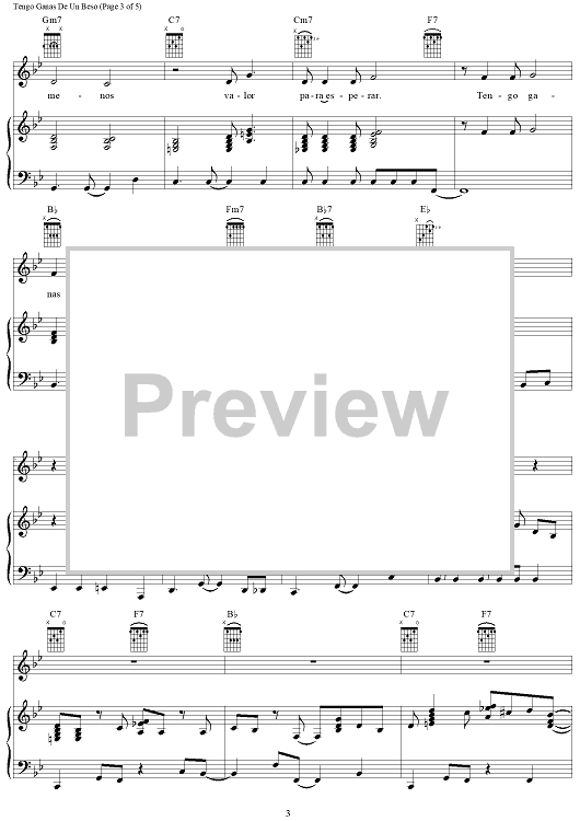 Digital Sheet Music for Tengo Ganas De Un Beso by Agustin Lara scored for Piano/Vocal/Chords; id:371742