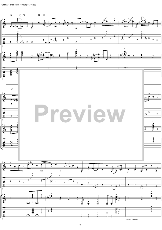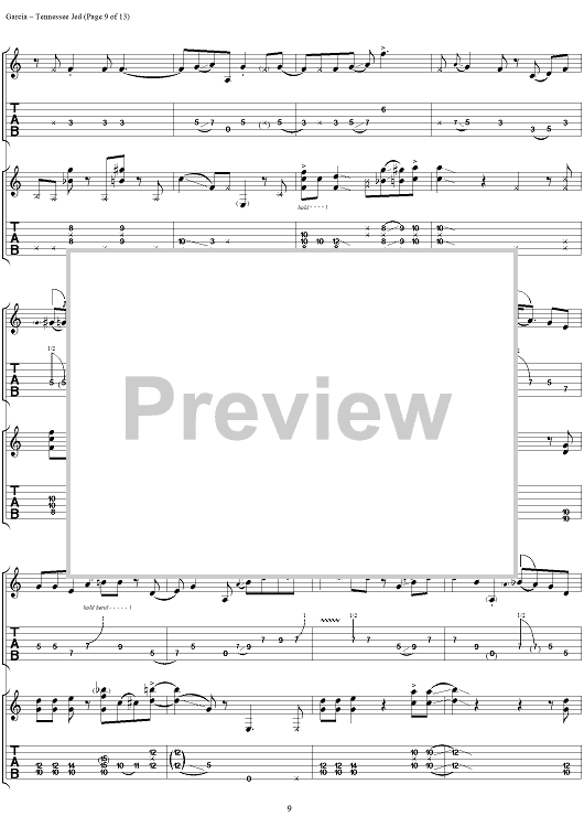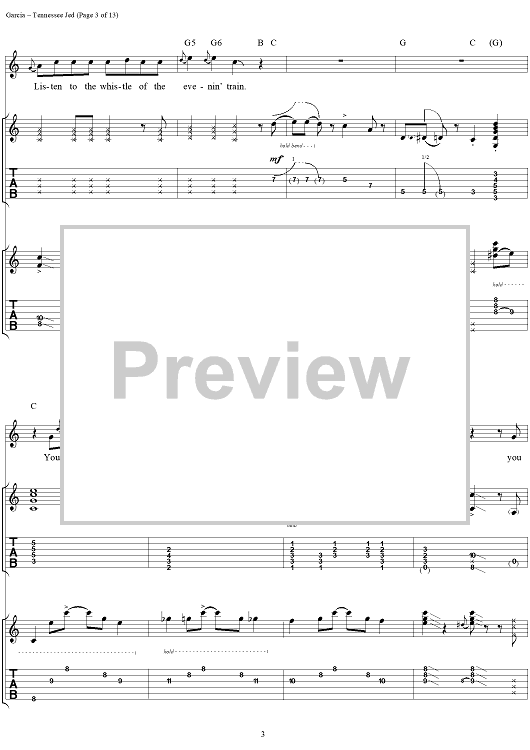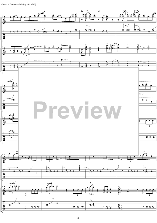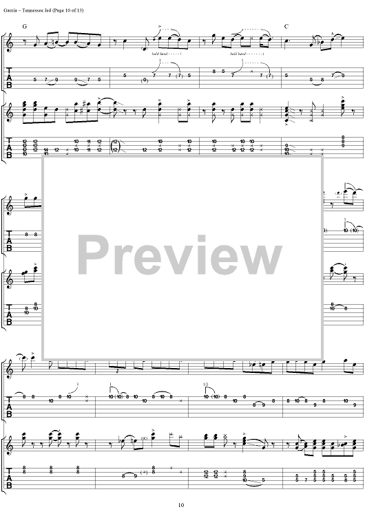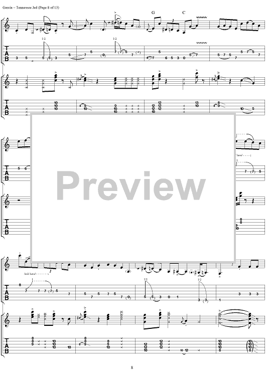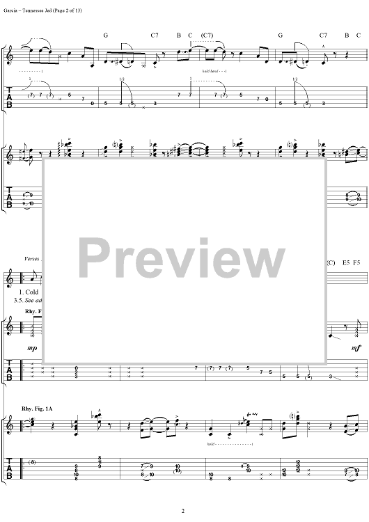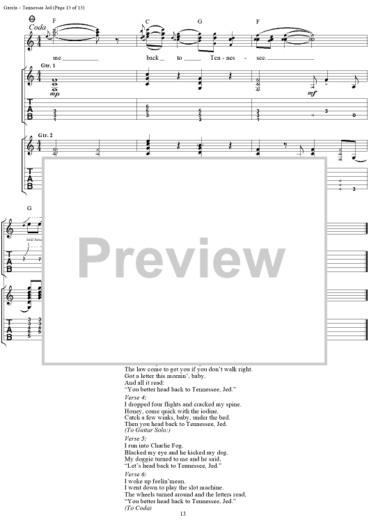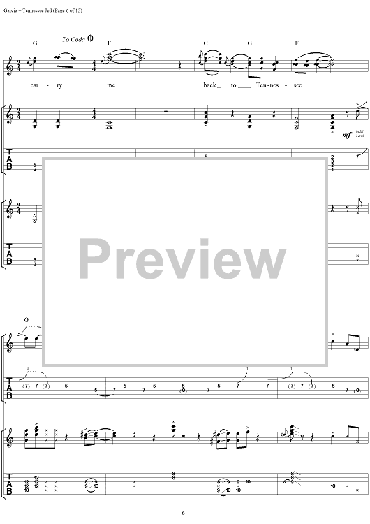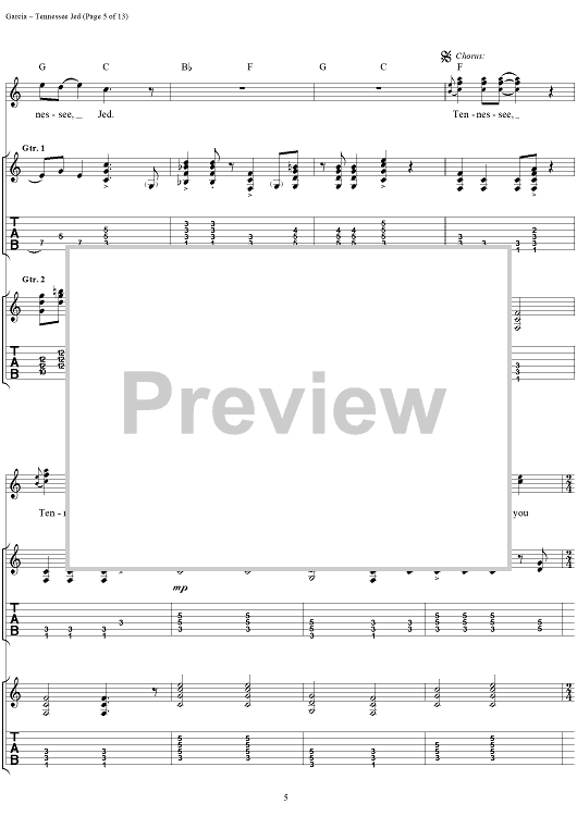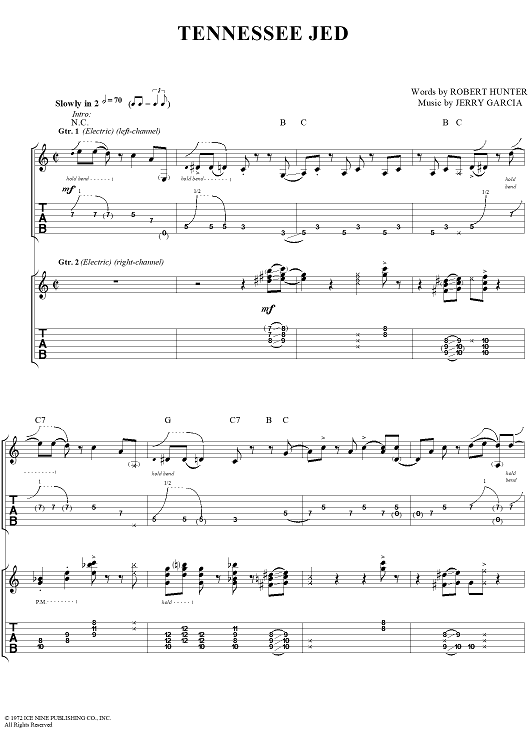 Digital Sheet Music for Tennessee Jed by Jerry Garcia, Robert Hunter, Grateful Dead scored for Guitar Tab/Vocal; id:113483