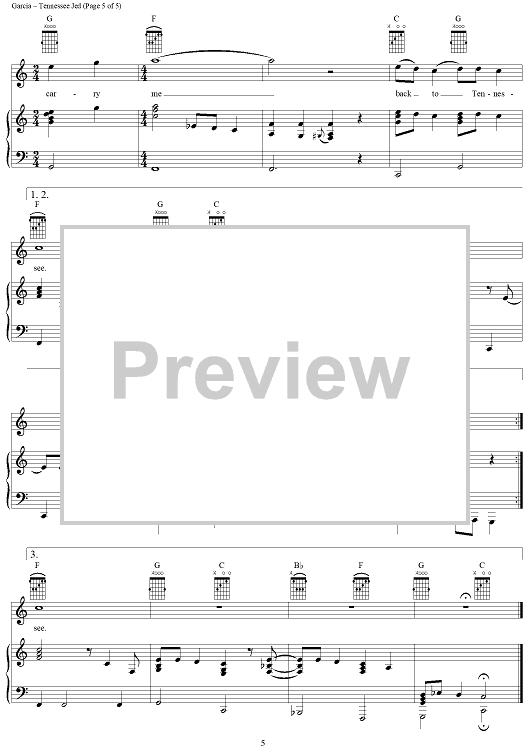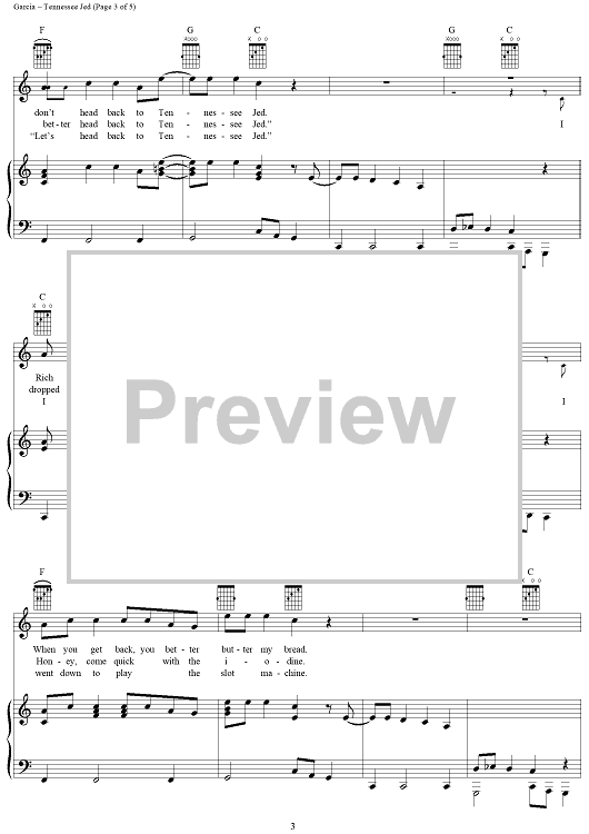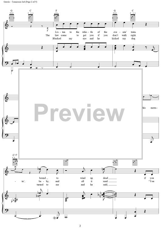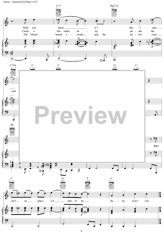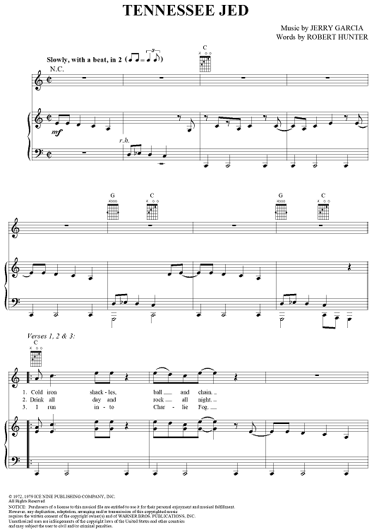 Digital Sheet Music for Tennessee Jed by Jerry Garcia, Robert Hunter, Grateful Dead scored for Piano/Vocal/Chords; id:268999