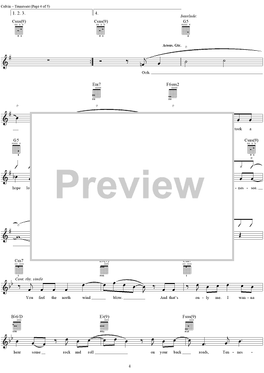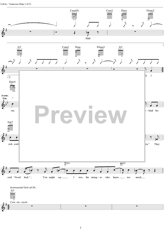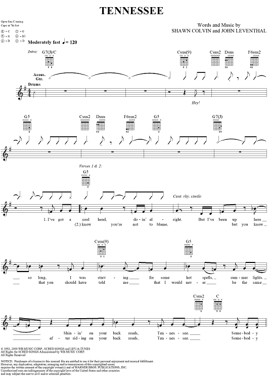 Digital Sheet Music for Tennessee by , Shawn Colvin, John Leventhal scored for Lead Sheet; id:235420