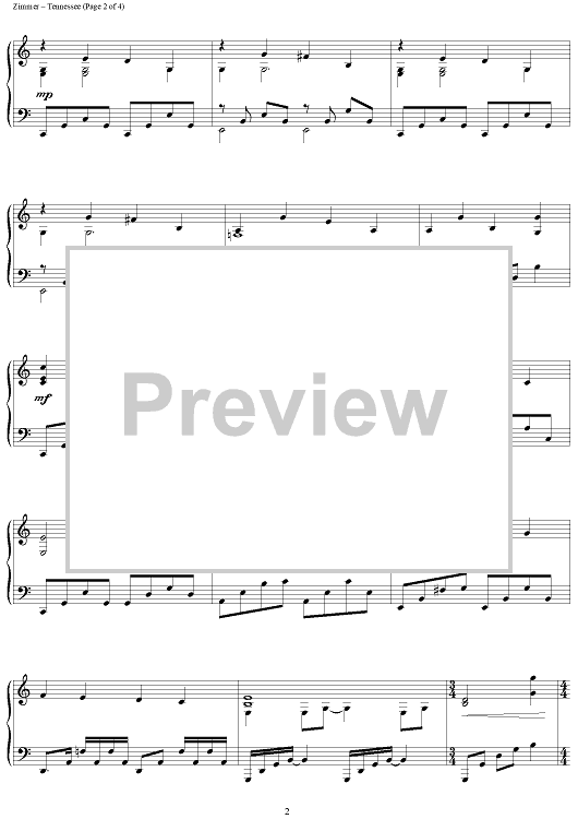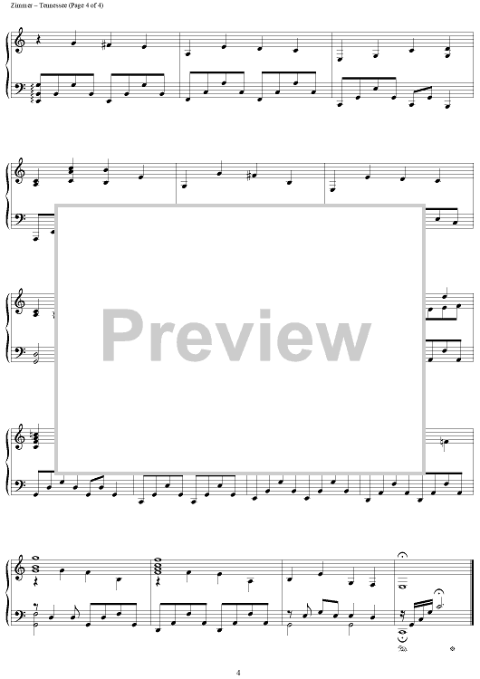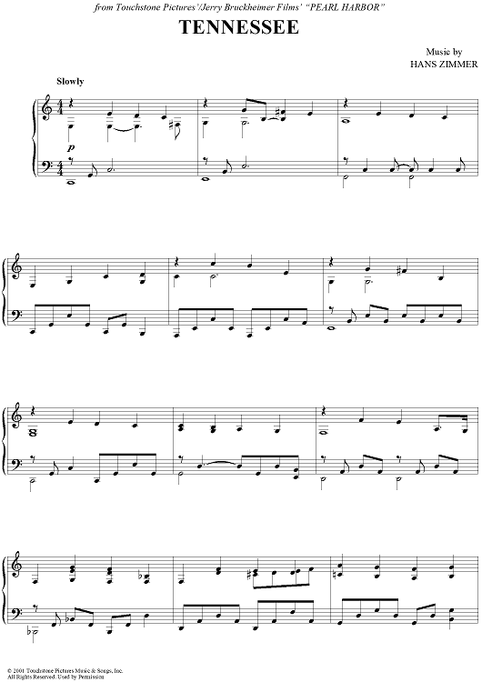 Digital Sheet Music for Tennessee by Hans Zimmer scored for Piano Solo; id:380626