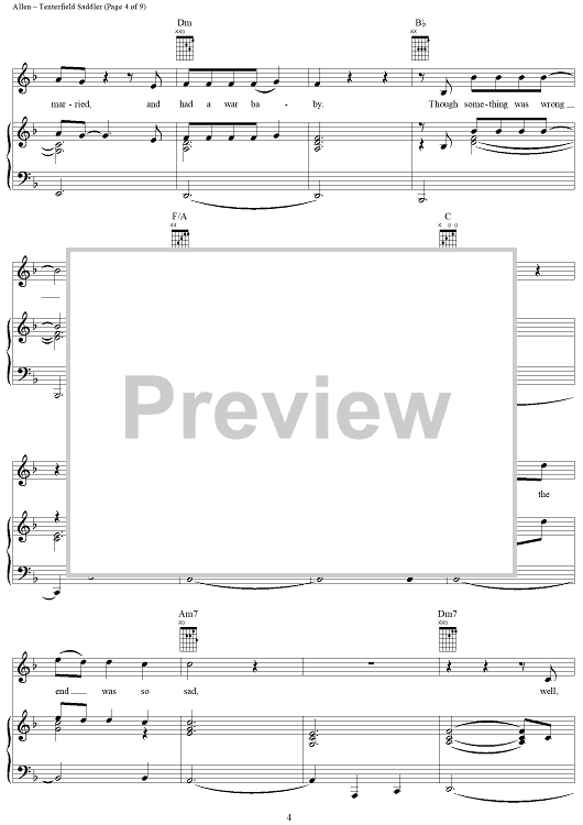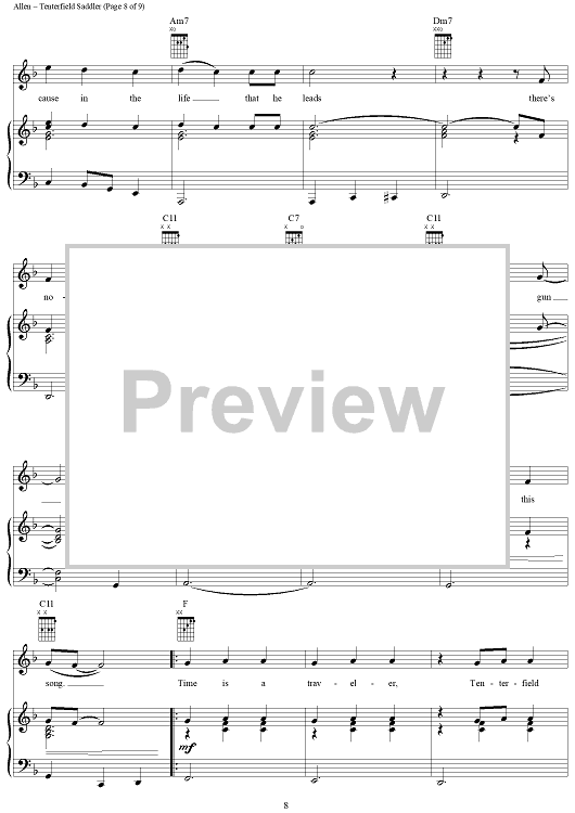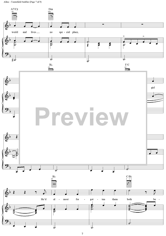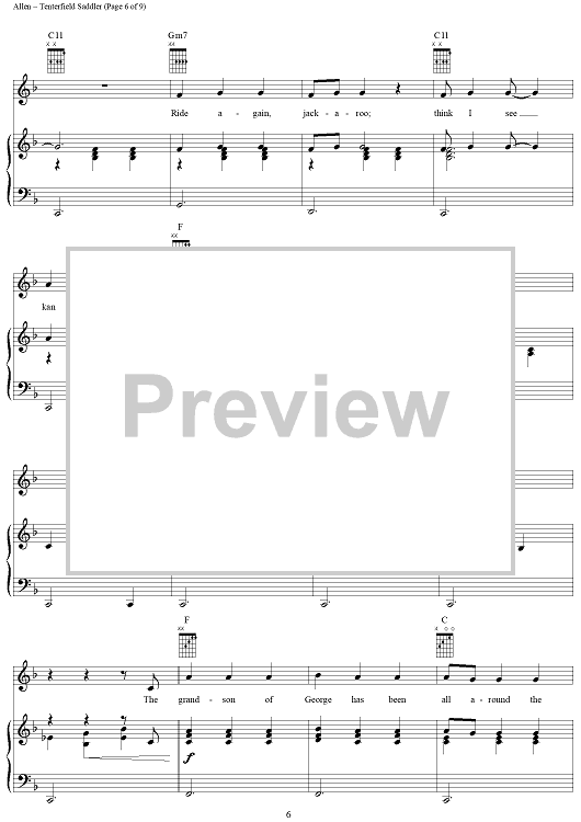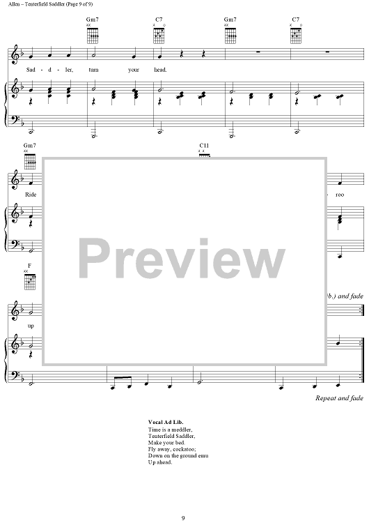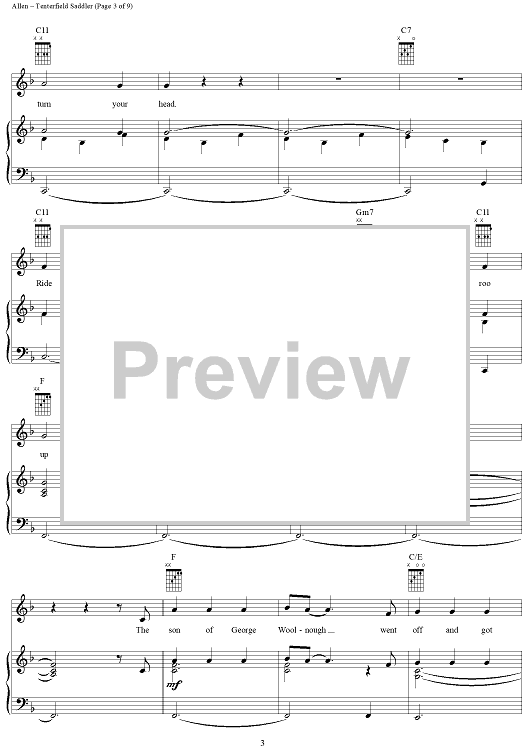 Digital Sheet Music for Tenterfield Saddler by Peter Allen scored for Piano/Vocal/Chords; id:305434