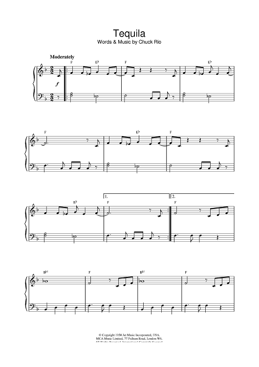Digital Sheet Music for Tequila by Chuck Rio, The Champs, James Last scored for Piano; id:376162
