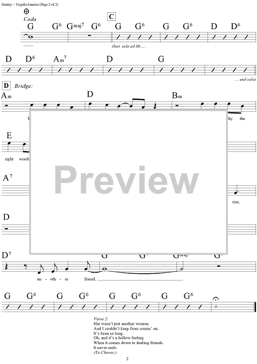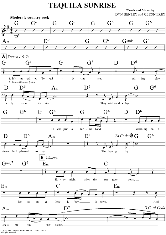 Digital Sheet Music for Tequila Sunrise by Don Henley, Glenn Frey, Eagles scored for Lead Sheet; id:293789