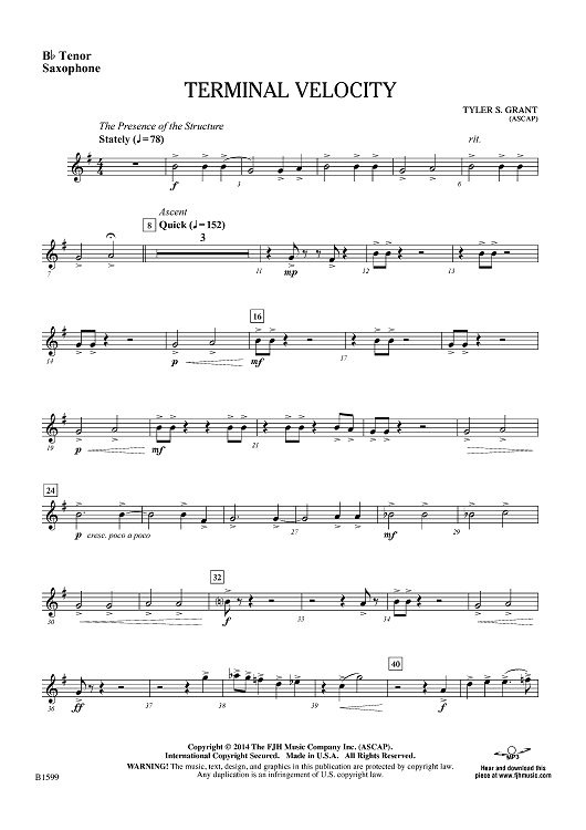 "Terminal Velocity - Bb Tenor Sax" Sheet Music by Tyler S. Grant