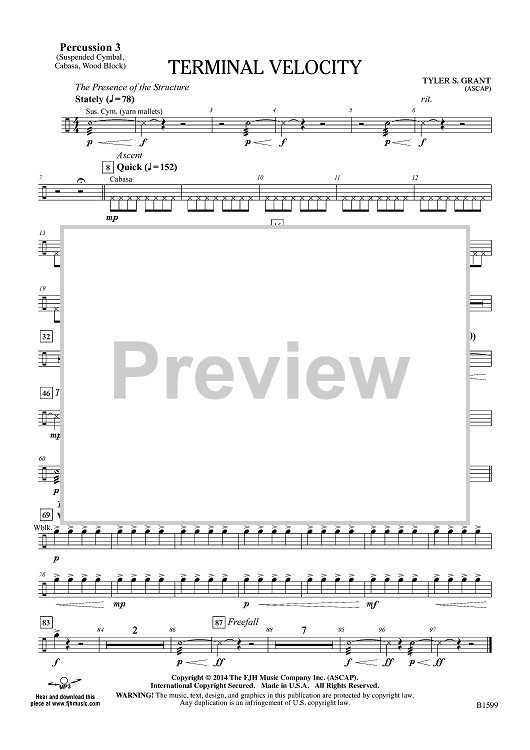 "Terminal Velocity - Percussion 3" Sheet Music by Tyler S. Grant