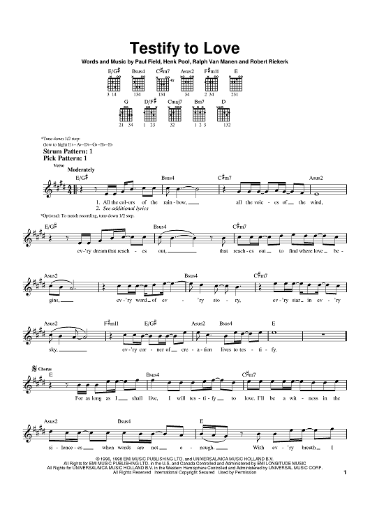 Digital Sheet Music for Testify To Love by Paul Field, Robert Riekerk, Ralph Van Manen, Henk Pool, Avalon scored for Easy Guitar; id:398207
