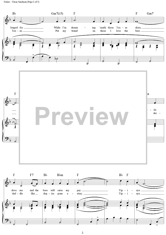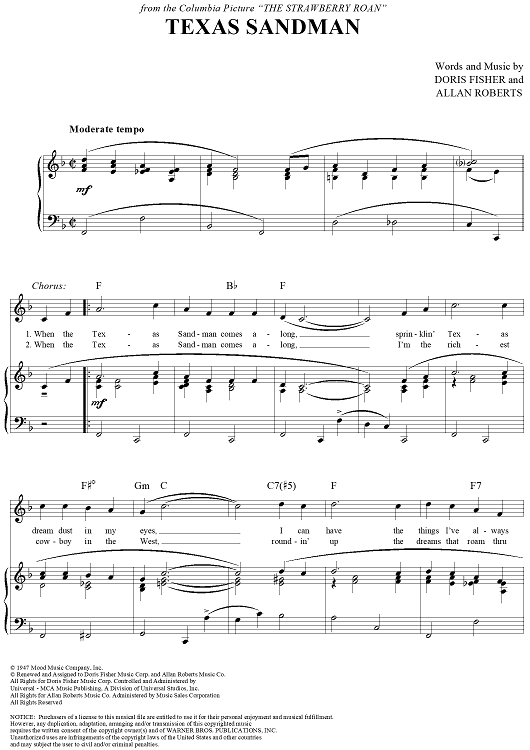 Digital Sheet Music for Texas Sandman by Allan Roberts, Doris Fisher scored for Piano/Vocal/Chords; id:289753