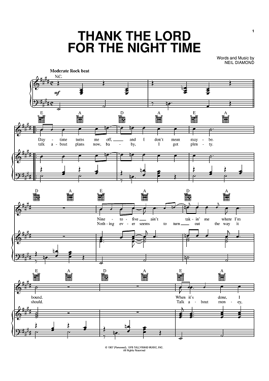 "Thank The Lord For The Night Time" Sheet Music by Neil Diamond