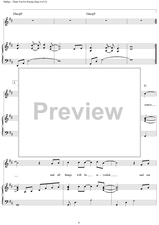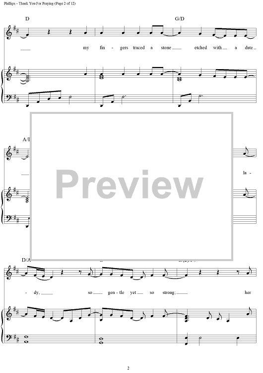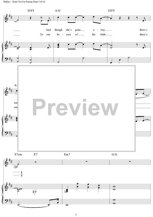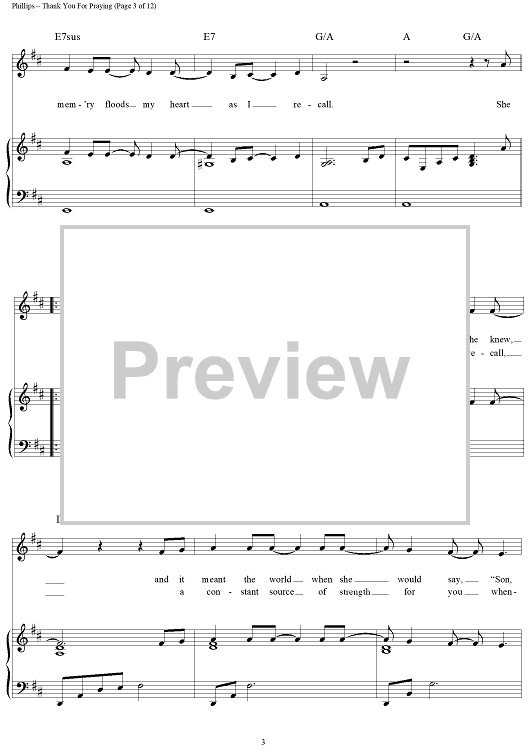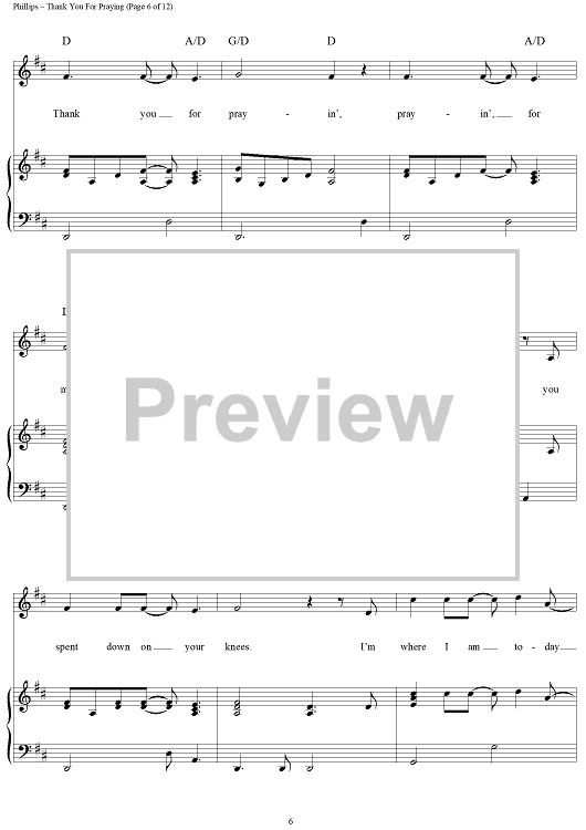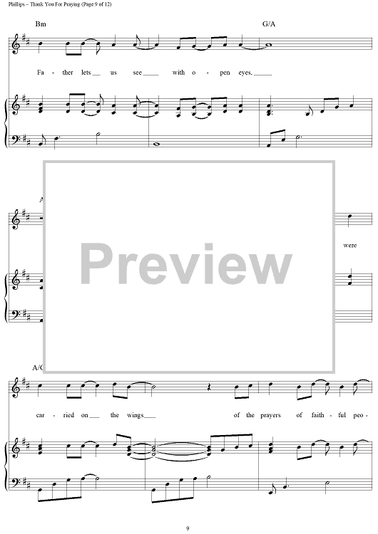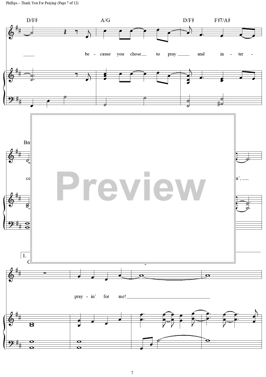 "Thank You For Praying" Sheet Music by Phillips, Craig and Dean