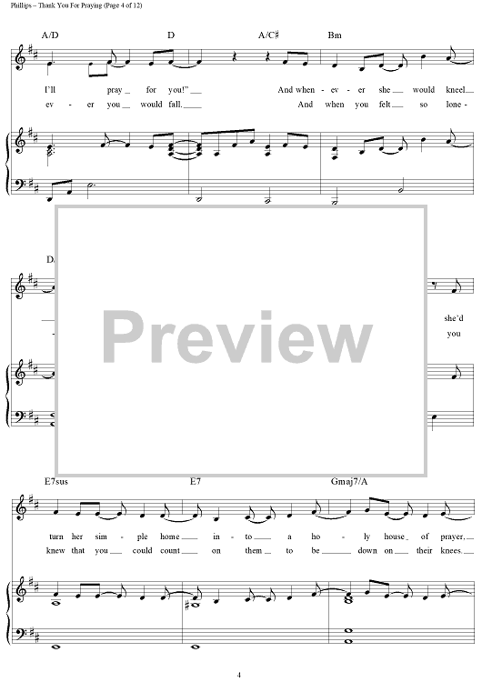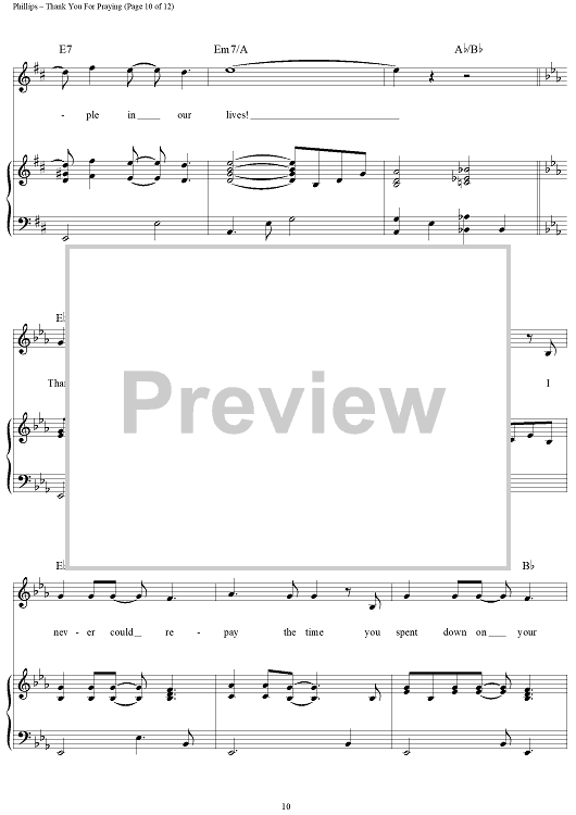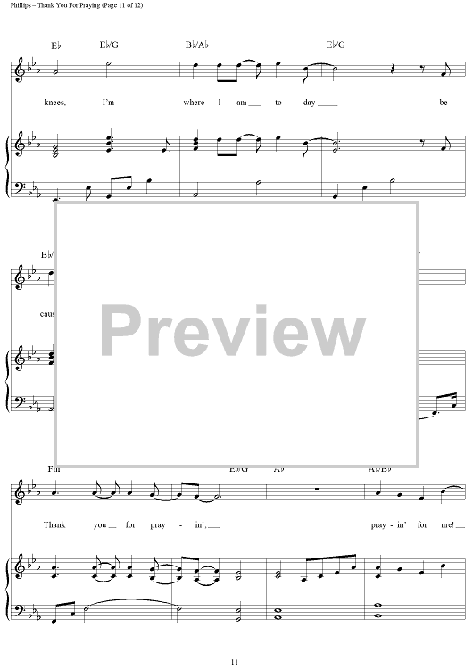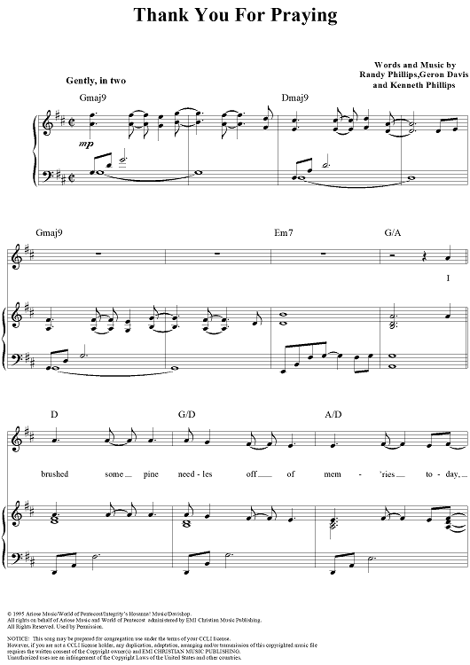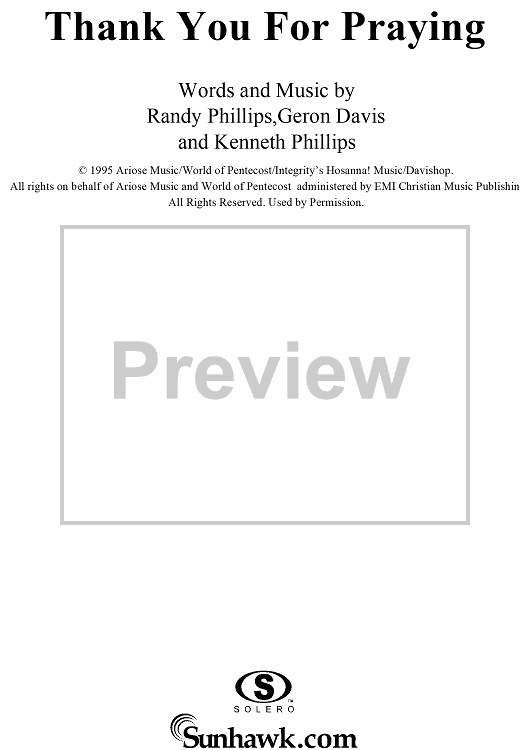 Digital Sheet Music for Thank You For Praying by Geron Davis, Randy Phillips, Kenneth Phillips, Phillips, Craig and Dean scored for Piano/Vocal/Chords; id:119585