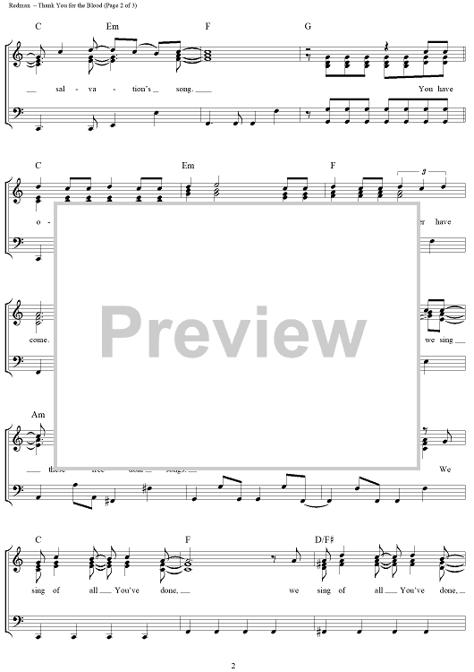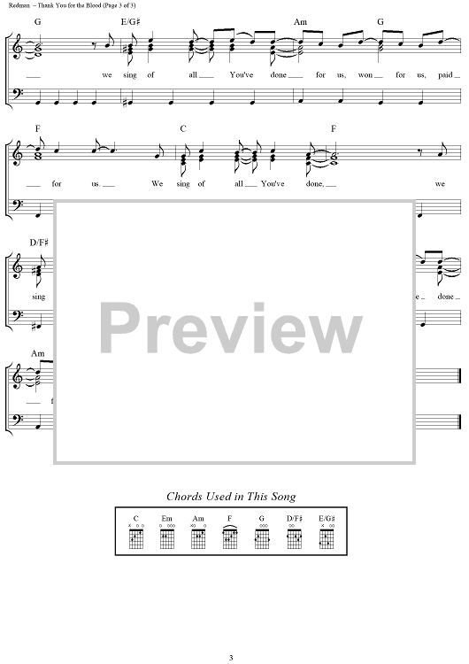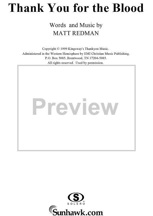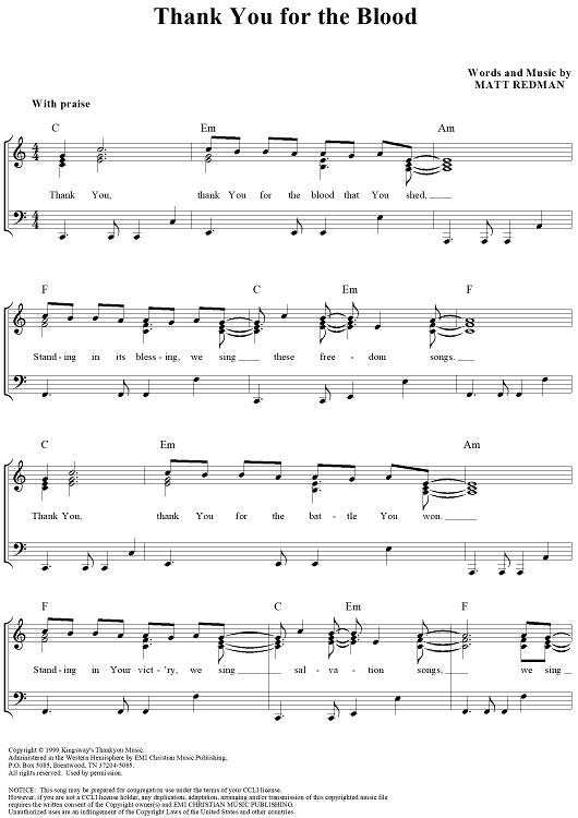 Digital Sheet Music for Thank You For The Blood by Matt Redman scored for Piano/Vocal/Chords; id:204168