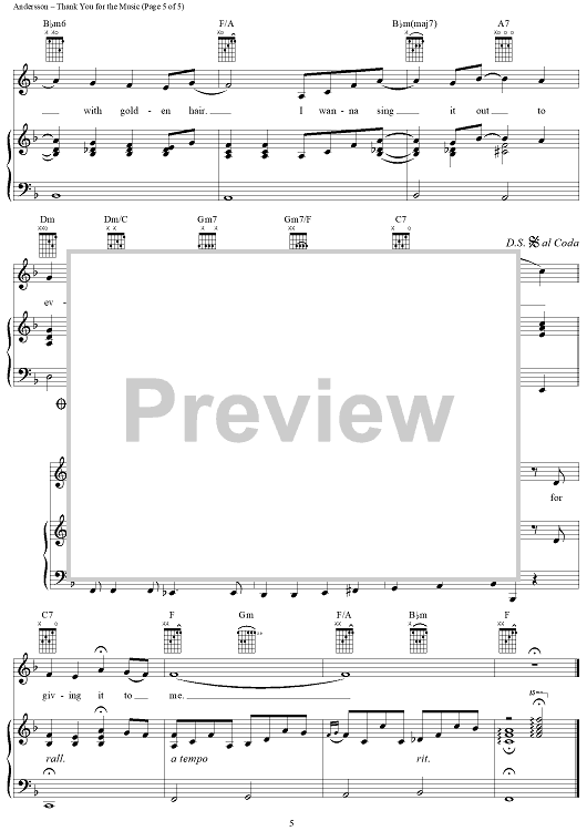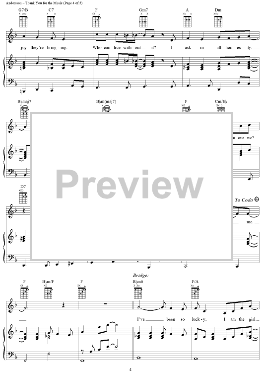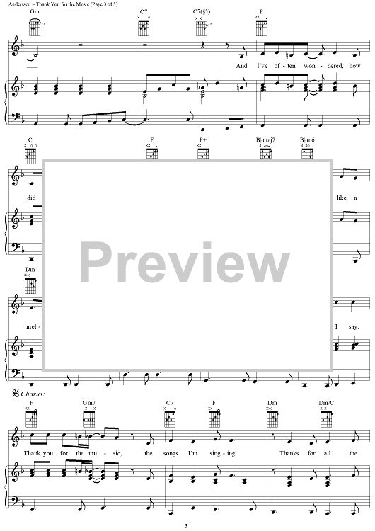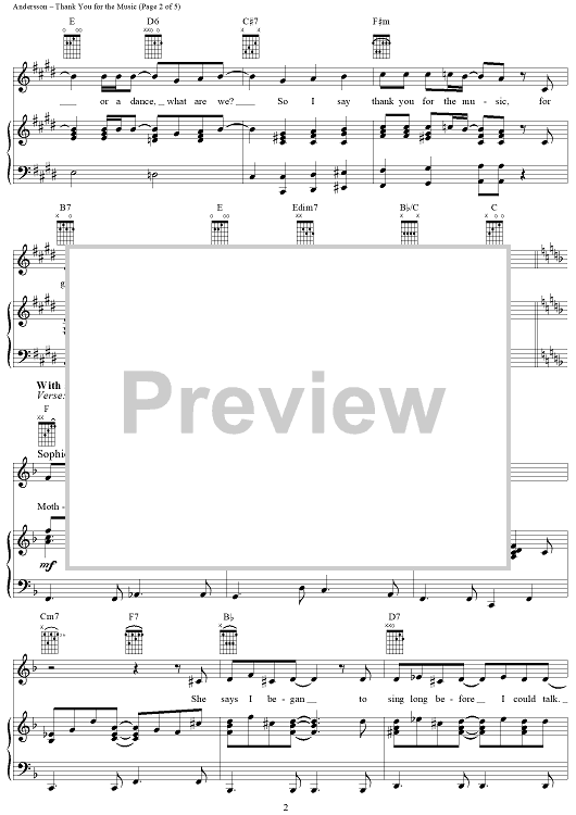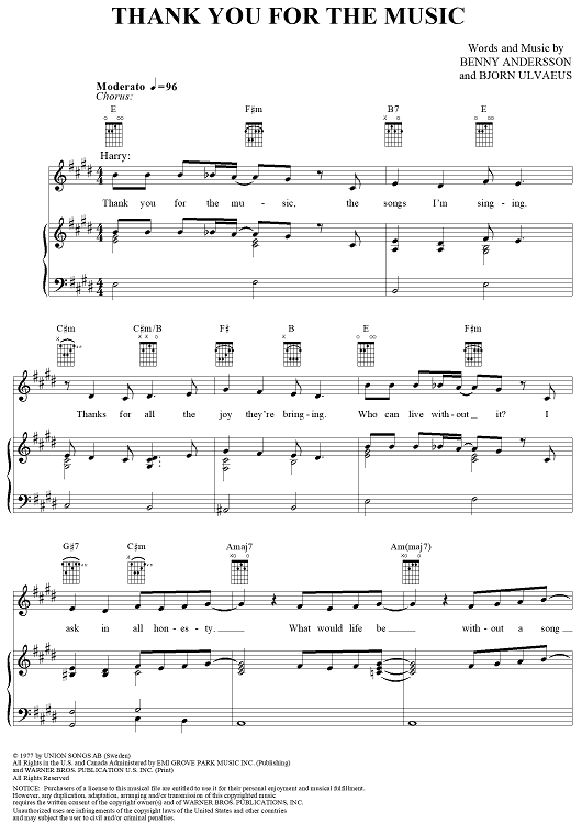 Digital Sheet Music for Thank You for the Music by ABBA, Benny Andersson, Bjorn Ulvaeus scored for Piano/Vocal/Chords; id:314971