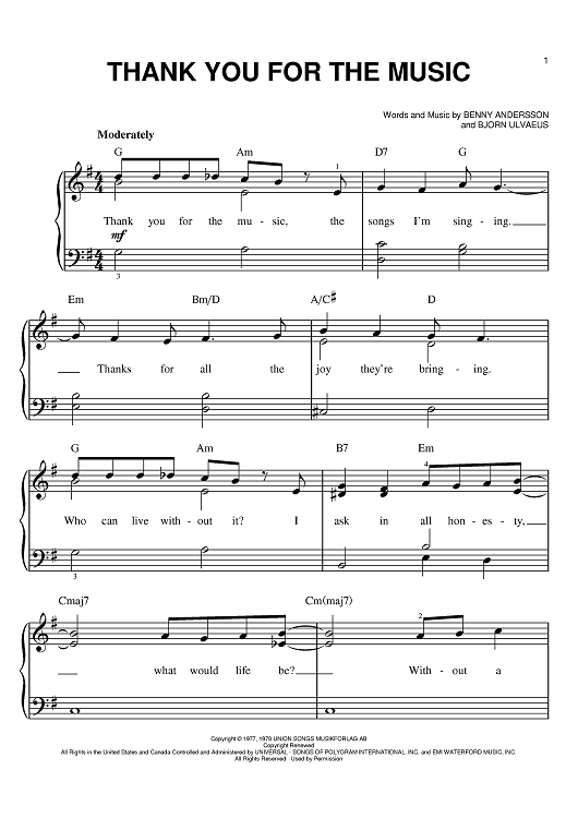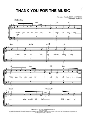 Digital Sheet Music for Thank You For The Music by ABBA, Benny Andersson, Bjorn Ulvaeus scored for Easy Piano; id:388880