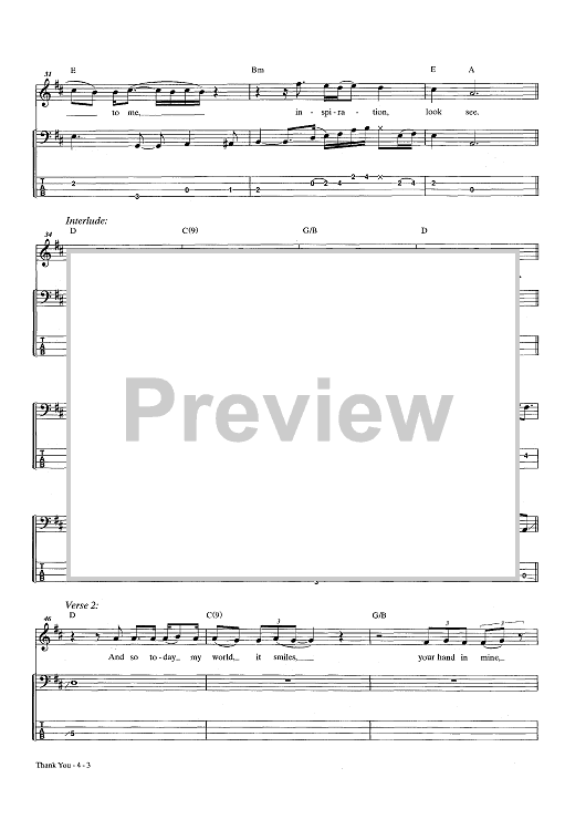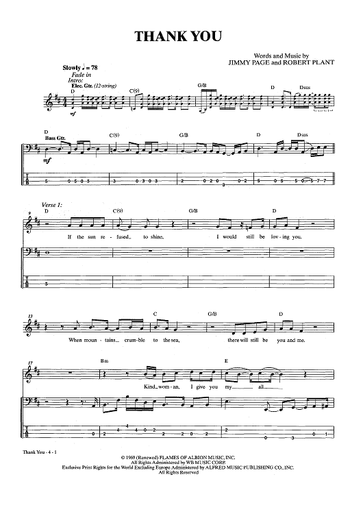 Digital Sheet Music for Thank You by Jimmy Page, Led Zeppelin, Robert Plant scored for Bass Tab; id:444101