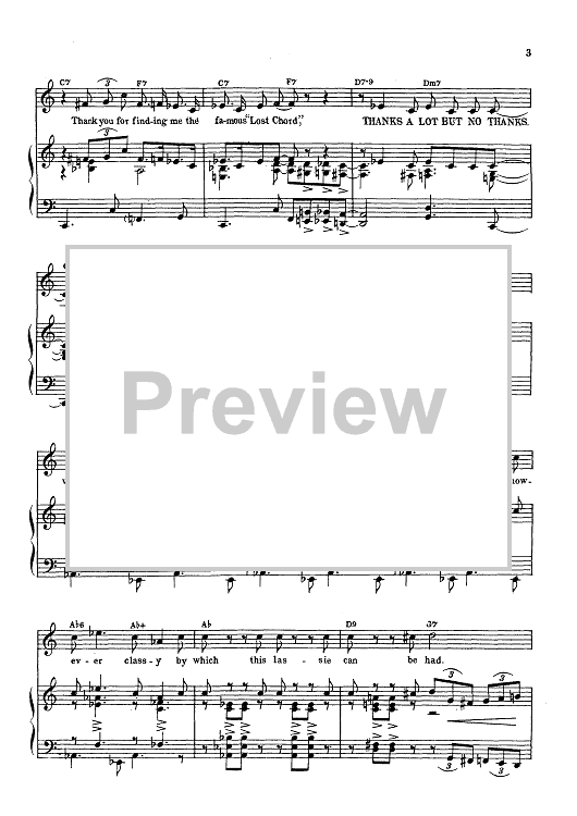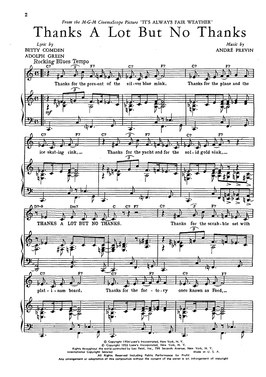 Digital Sheet Music for Thanks A Lot But No Thanks by Betty Comden, Adolph Green, Andre Previn, Dan Dailey scored for Piano/Vocal/Chords; id:423081