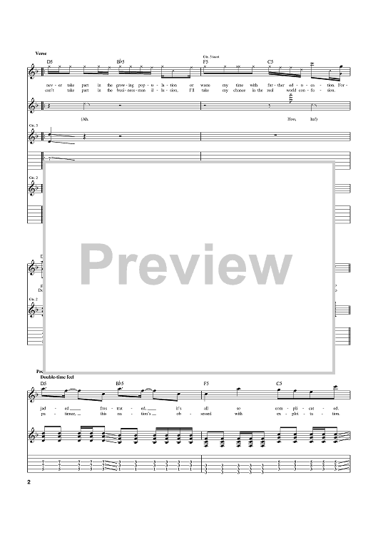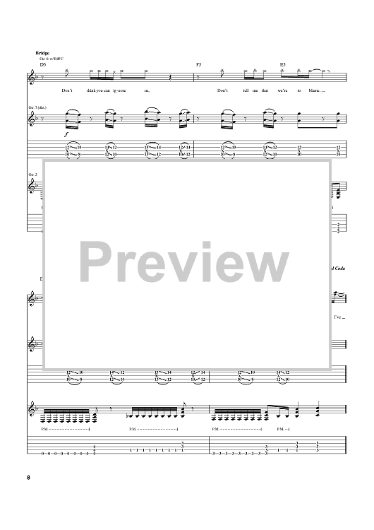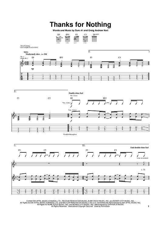 Digital Sheet Music for Thanks For Nothing by Greig Andrew Nori, Sum 41 scored for Guitar Tab; id:371073