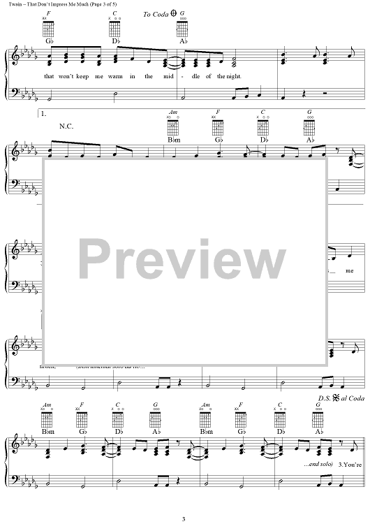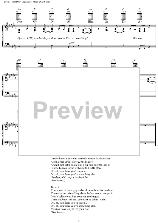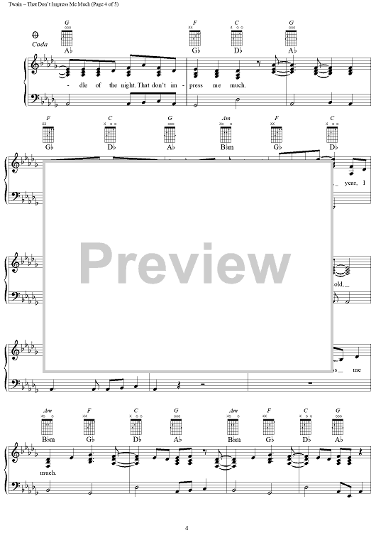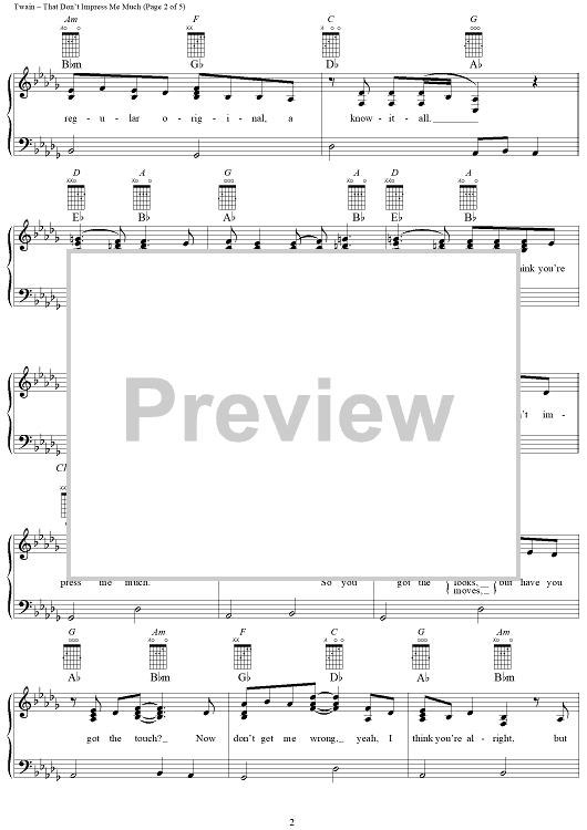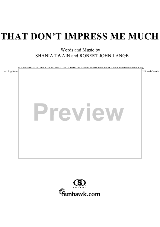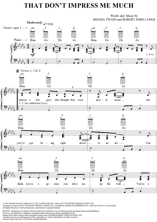 Digital Sheet Music for That Don't Impress Me Much by Shania Twain, Robert Lange scored for Piano/Vocal/Chords; id:191206