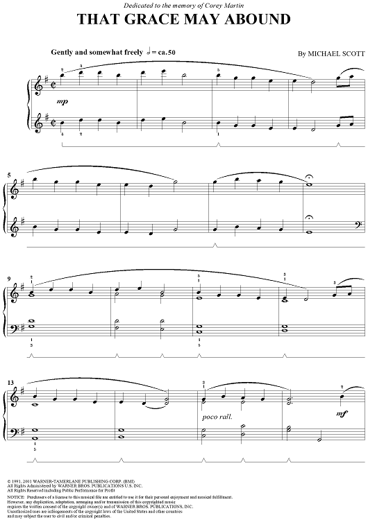 Digital Sheet Music for That Grace May Abound by Michael Scott scored for Piano Solo; id:287370