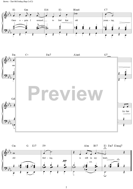 Digital Sheet Music for That Old Feeling by Sammy Fain, Lew Brown scored for Easy Organ/Vocal; id:273912