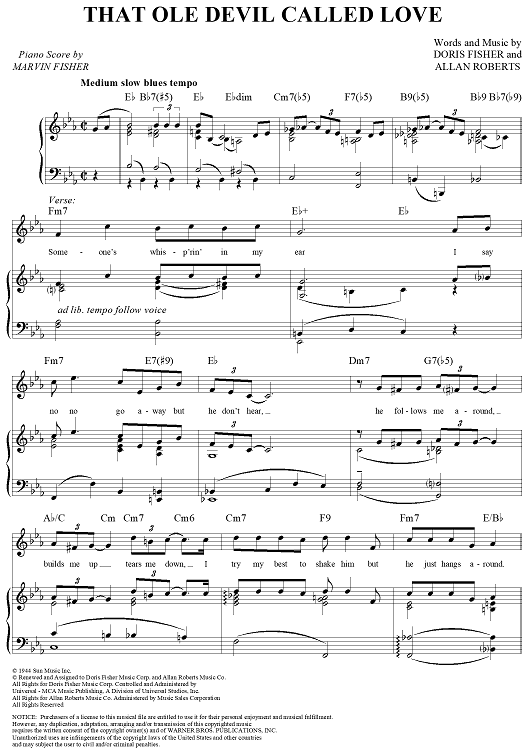 Digital Sheet Music for That Ole Devil Called Love by Marvin Fisher, Allan Roberts, Doris Fisher scored for Piano/Vocal/Chords; id:289754