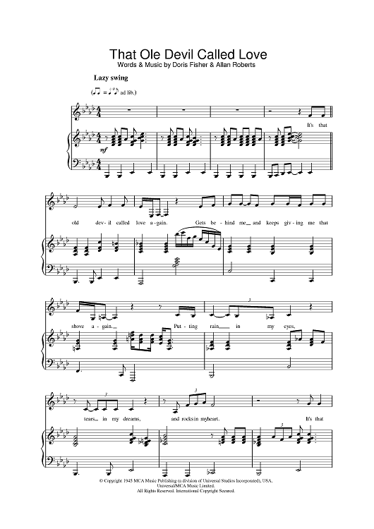 Digital Sheet Music for That Ole Devil Called Love by Diana Krall, Allan Roberts, Doris Fisher scored for Piano/Vocal/Chords; id:388600