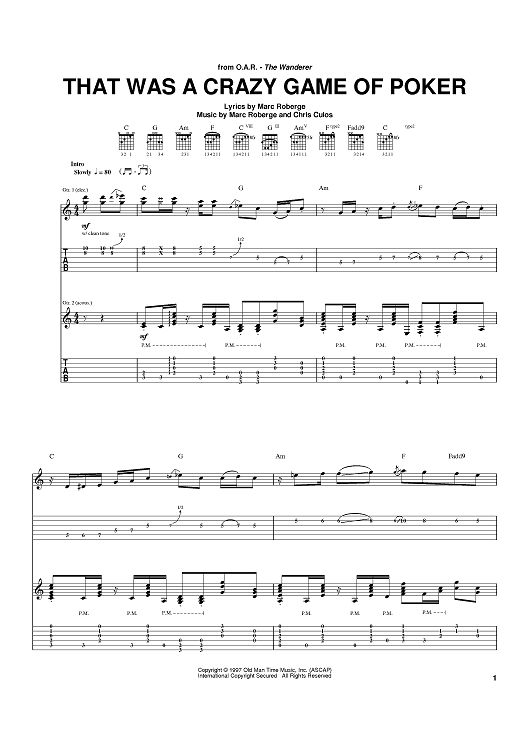 Digital Sheet Music for That Was A Crazy Game Of Poker by Chris Culos, O.A.R., Marc Roberge scored for Guitar Tab; id:390263