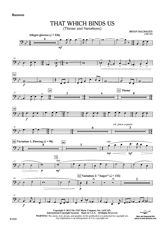 "That Which Binds Us (Theme and Variations) - Bassoon" Sheet Music by Brian Balmages