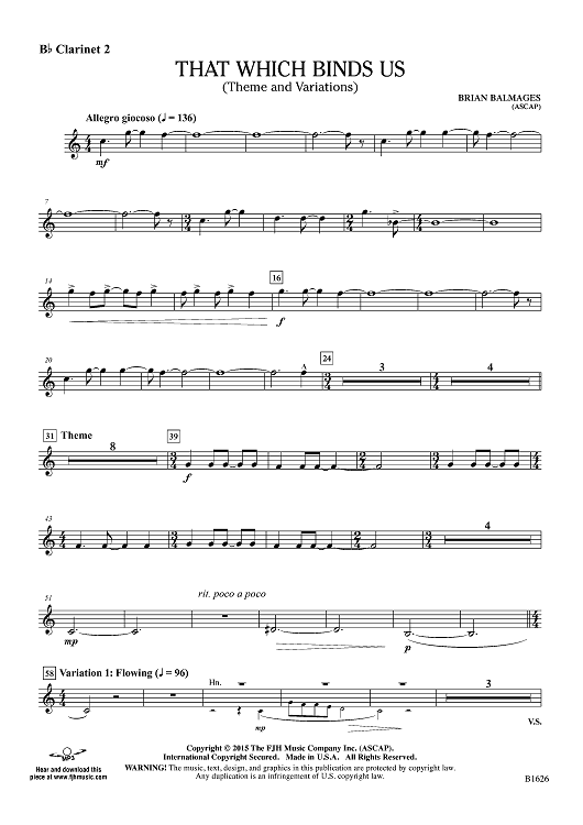 "That Which Binds Us (Theme and Variations) - Bb Clarinet 2" Sheet Music by Brian Balmages