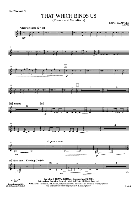 "That Which Binds Us (Theme and Variations) - Bb Clarinet 3" Sheet Music by Brian Balmages