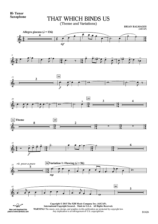Digital Sheet Music for That Which Binds Us (Theme and Variations) - Bb Tenor Sax by Brian Balmages scored for Concert Band; id:454750