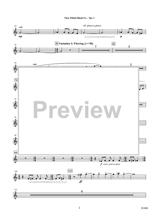 Digital Sheet Music for That Which Binds Us (Theme and Variations) - Bb Trumpet 1 by Brian Balmages scored for Concert Band; id:454752