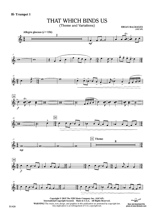 "That Which Binds Us (Theme and Variations) - Bb Trumpet 1" Sheet Music by Brian Balmages
