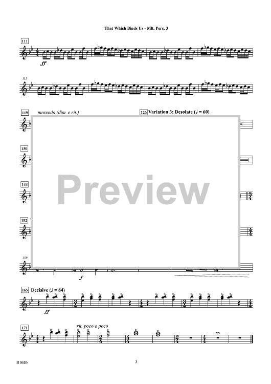 Digital Sheet Music for That Which Binds Us (Theme and Variations) - Mallet Percussion 3 by Brian Balmages scored for Concert Band; id:454766