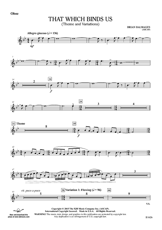 "That Which Binds Us (Theme and Variations) - Oboe" Sheet Music by Brian Balmages