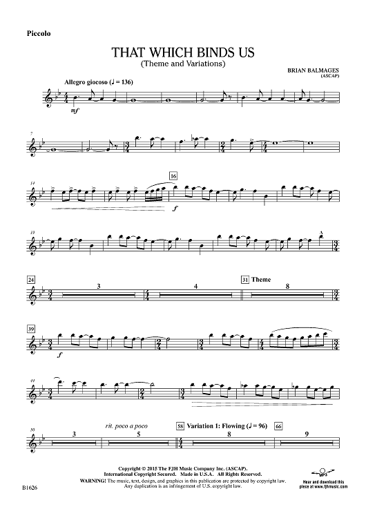 "That Which Binds Us (Theme and Variations) - Piccolo" Sheet Music by Brian Balmages
