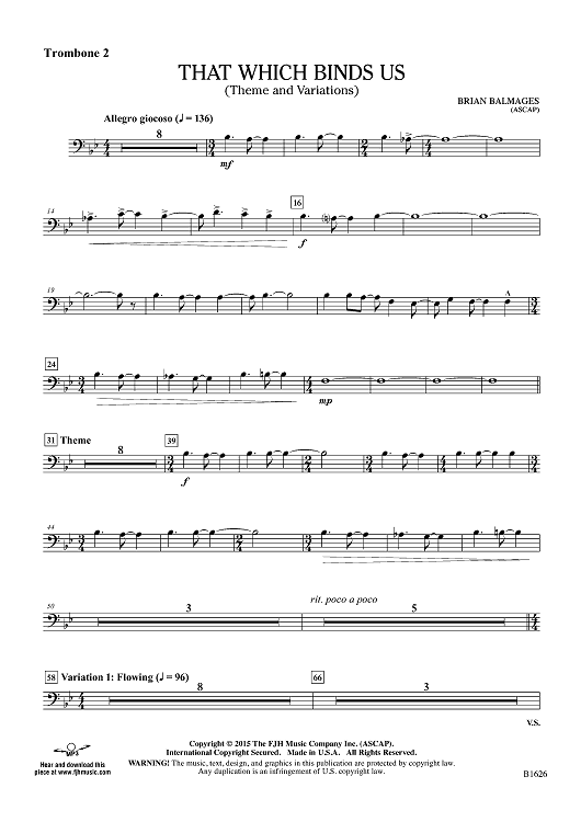"That Which Binds Us (Theme and Variations) - Trombone 2" Sheet Music by Brian Balmages
