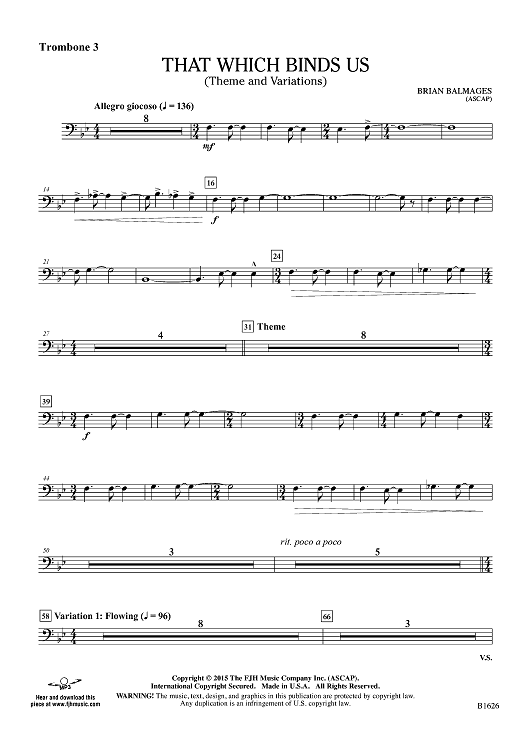 "That Which Binds Us (Theme and Variations) - Trombone 3" Sheet Music by Brian Balmages