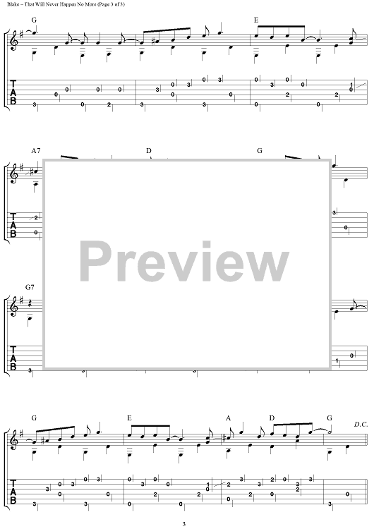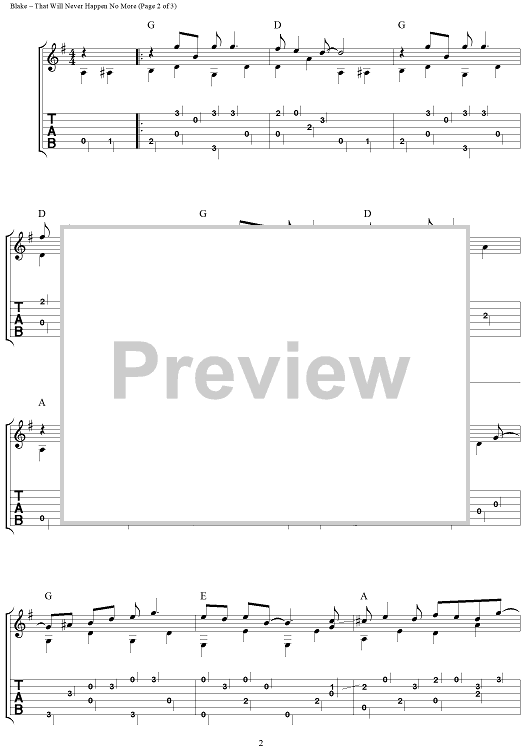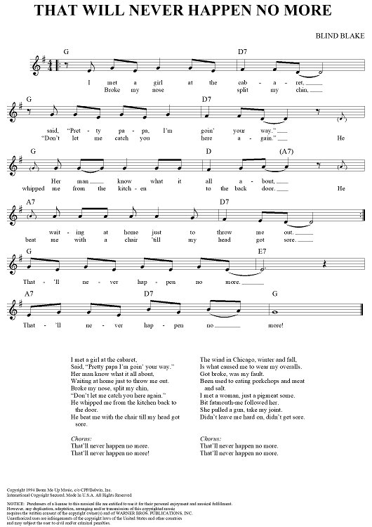 "That Will Never Happen No More" Sheet Music by Blind Blake