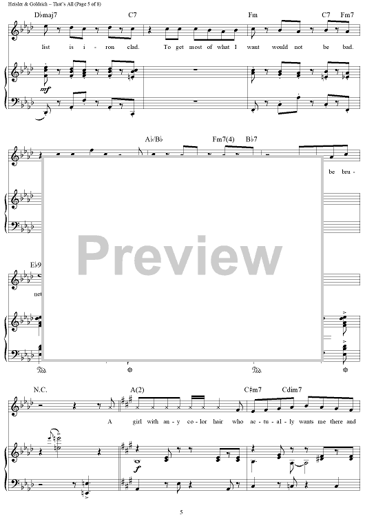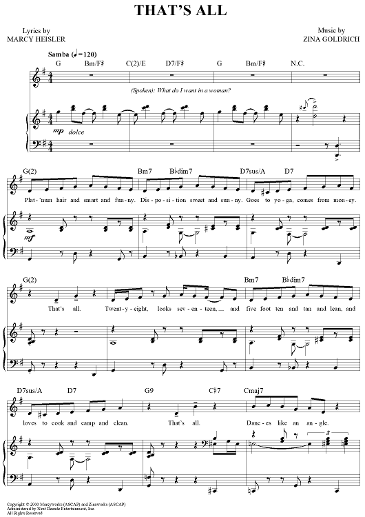 Digital Sheet Music for That's All by Goldrich & Heisler scored for Piano/Vocal/Chords; id:454431