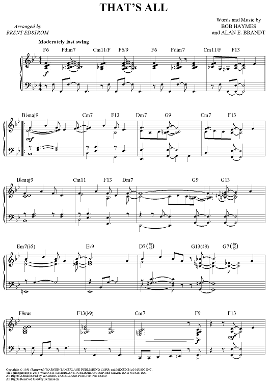 Digital Sheet Music for That's All by Alan Brandt, Bob Haymes, Brent Edstrom scored for Piano Solo; id:463796