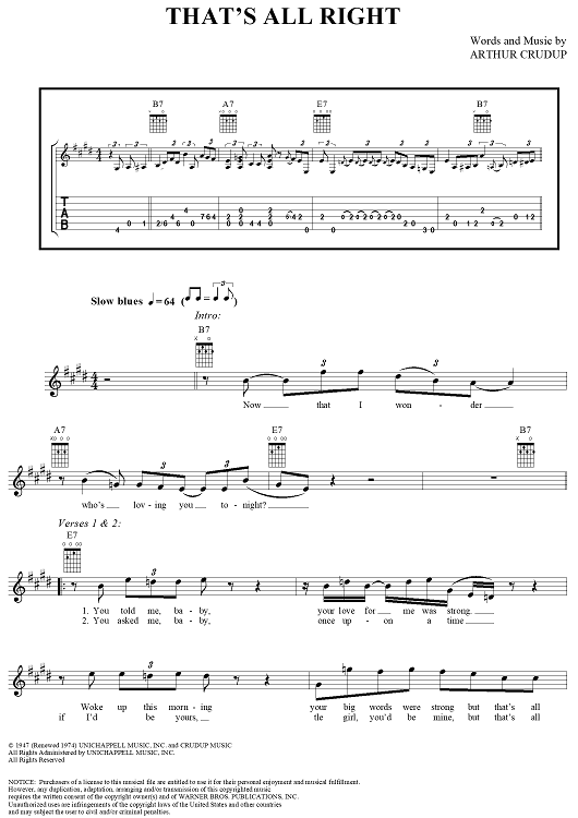 Digital Sheet Music for That's All Right by Jerry Garcia, Arthur Crudup scored for Easy Guitar Tab/Vocal; id:291729