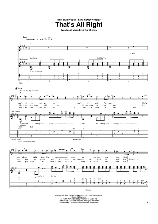 Digital Sheet Music for That's All Right by Elvis Presley, Arthur Crudup scored for Guitar Tab; id:397983