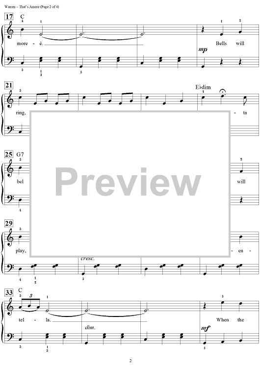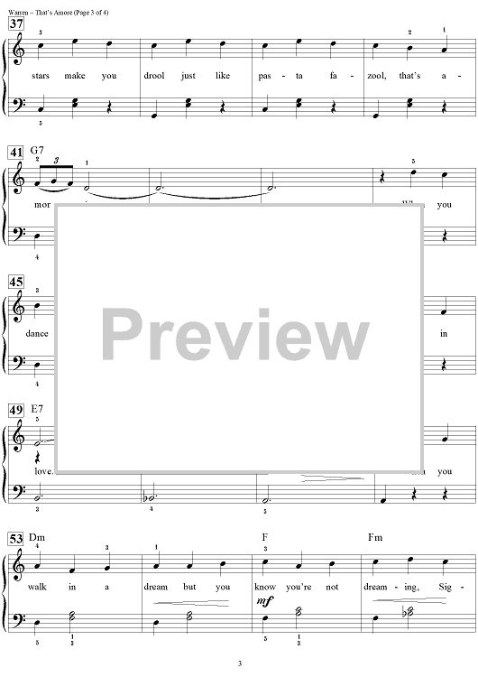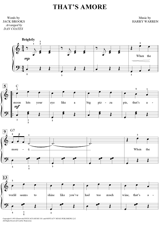 Digital Sheet Music for That's Amore by Dan Coates, Harry Warren, Jack Brooks scored for Easy Piano/Vocal/Chords; id:451987