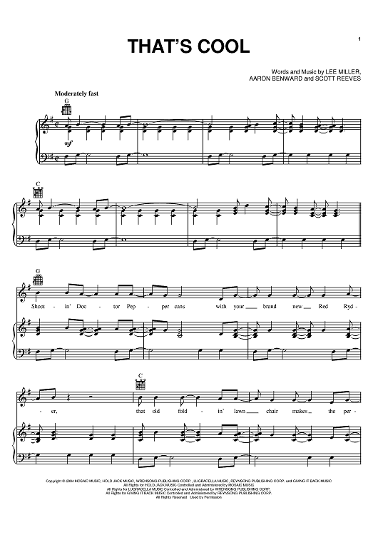 Digital Sheet Music for That's Cool by Aaron Benward, Blue County, Lee Thomas Miller, Scott Reeves scored for Piano/Vocal/Chords; id:380351