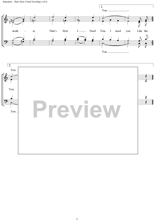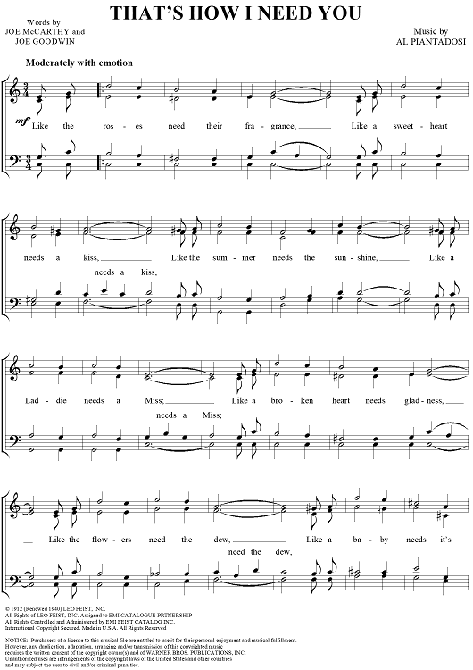 Digital Sheet Music for That's How I Need You by Joe McCarthy, Al Piantadosi, Joe Goodwin scored for Barbershop Quartet; id:254654