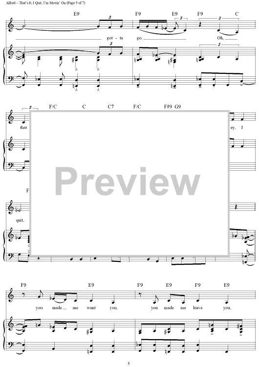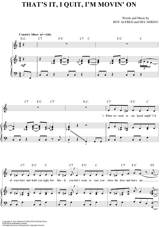 Digital Sheet Music for That's It, I Quit, I'm Movin' On by Roy Alfred, Adele, Del Serino scored for Piano/Vocal/Chords; id:459096
